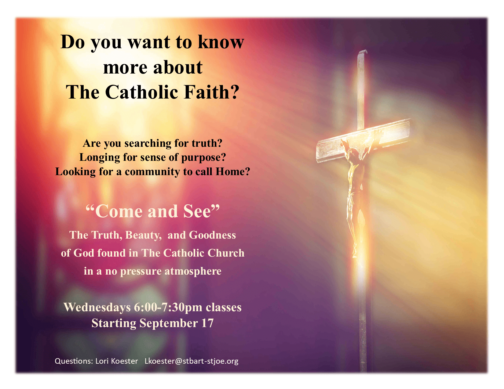These classes are for you if you are interested in becoming Catholic or just want to know more about Catholicism.