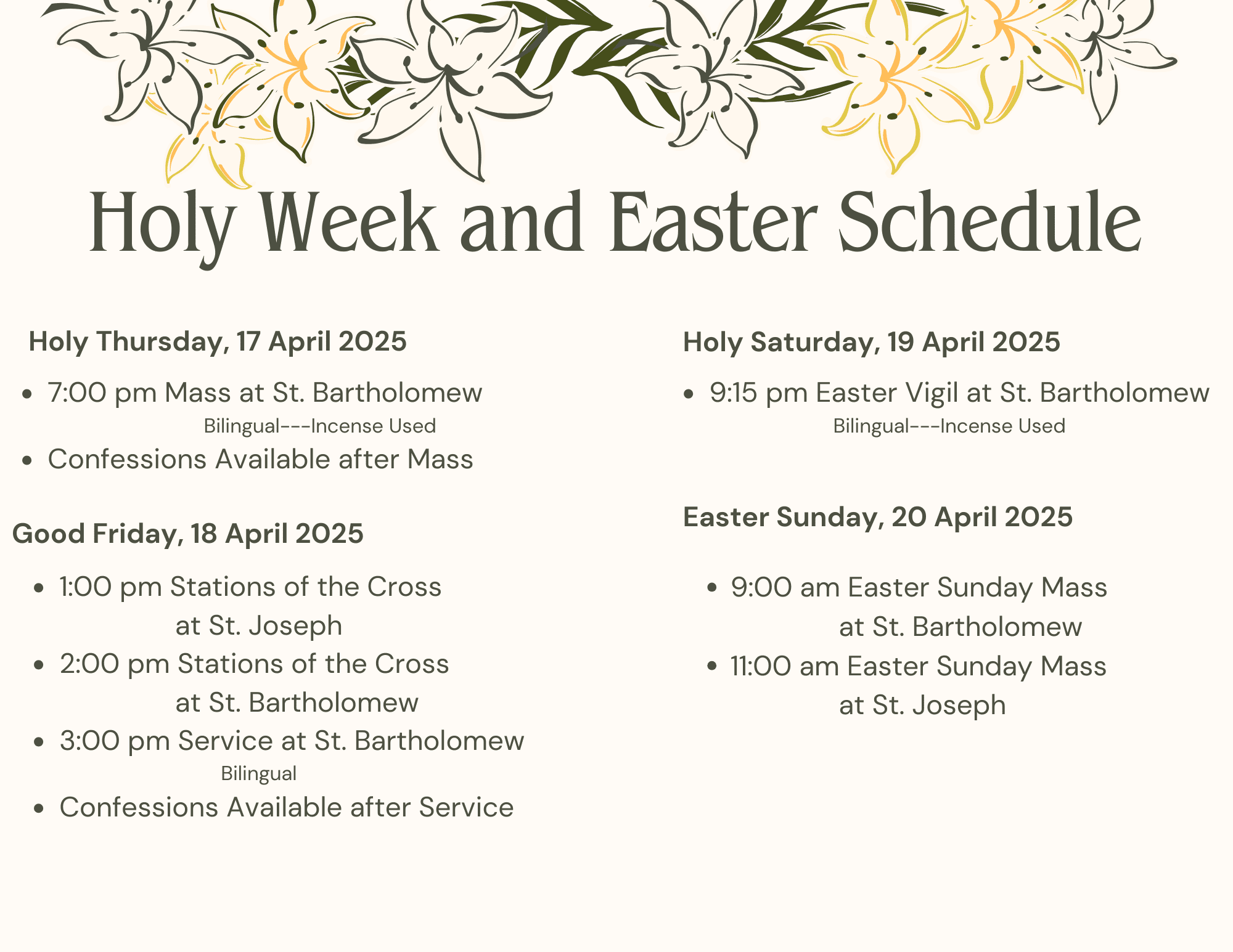 Sunday, April 6th 2:00 PM to 4:00 PM at St. Bartholomew.
