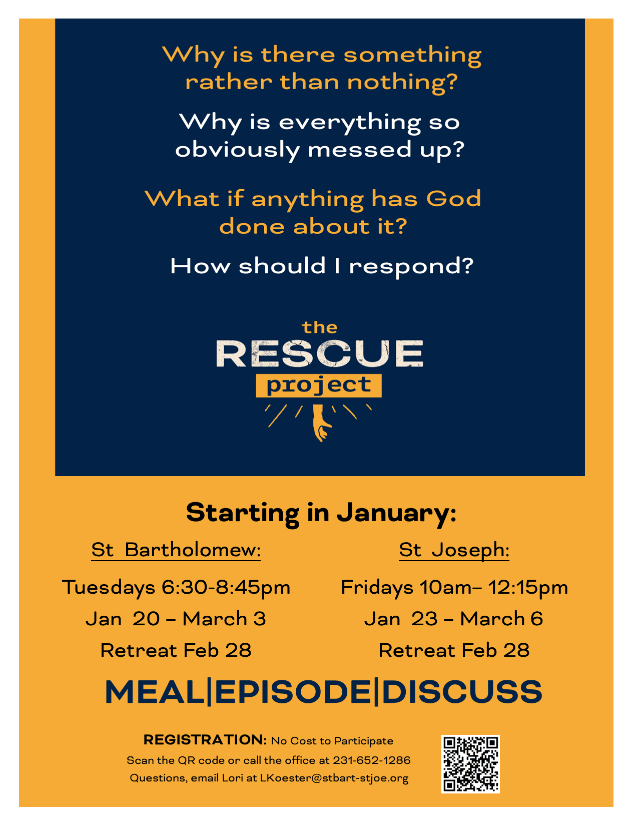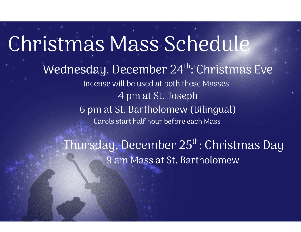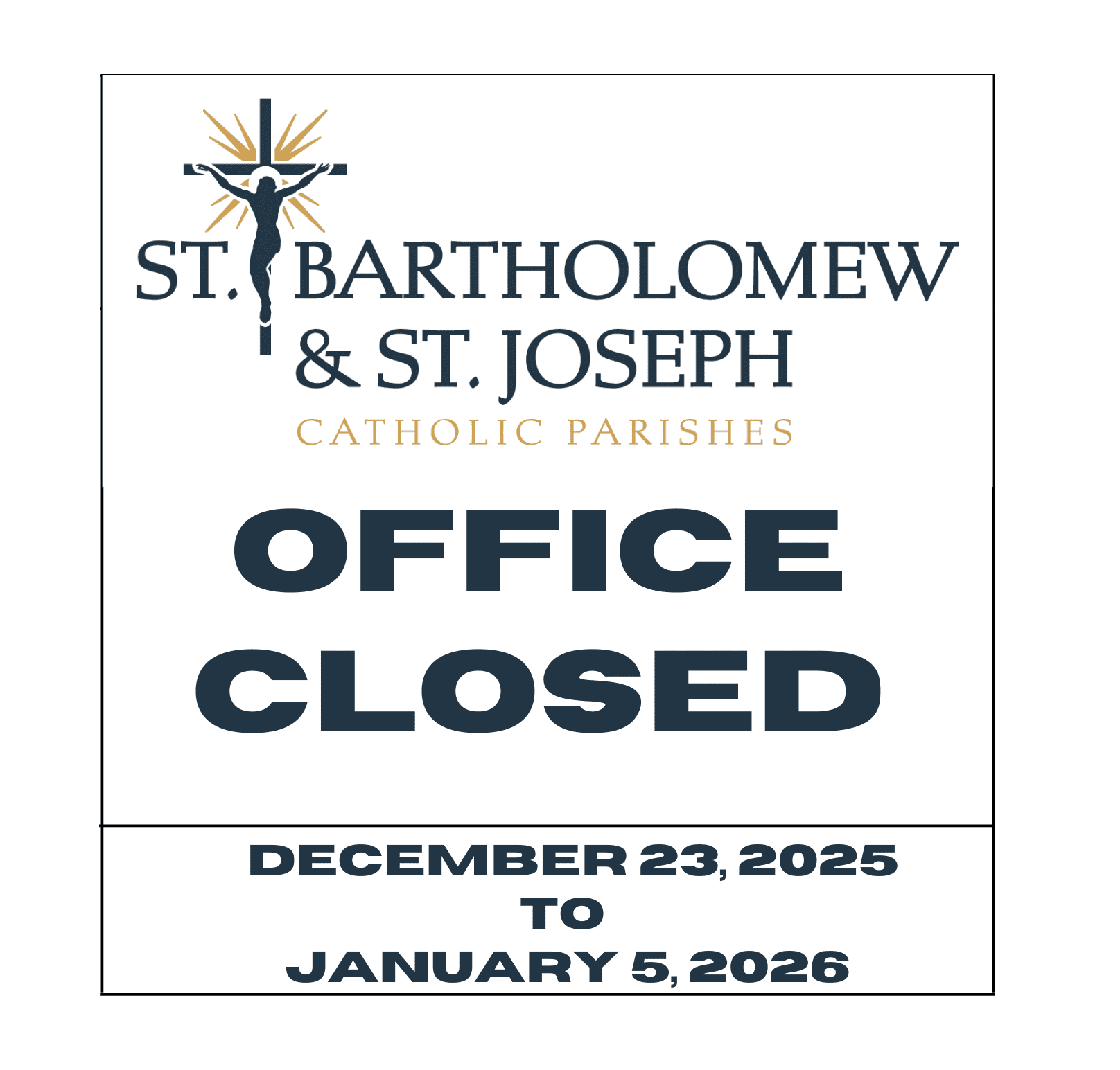 Merry Christmas! To allow our staff time to celebrate this joyful season, the office of St. Bartholomew and St. Joseph is closed until Thursday, January 2nd. If a need arises, please call the office at (231) 652-1286 and leave a voicemail or send an email to parishoffice@stbart-stjoe.old.diocesanweb.org.